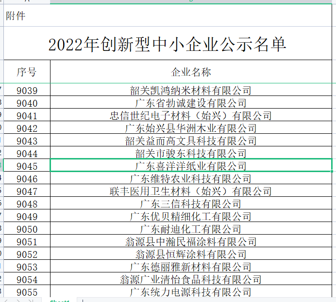 廣東大能環保集團有限公司喜訊傳來。我司旗下——廣東喜洋洋紙業有限公司順利通過2022年廣東省創新型中小企業認定。這標志著公司的管理又邁上了一個全新的臺階,對于公司未來的發展具有里程碑式的意義。